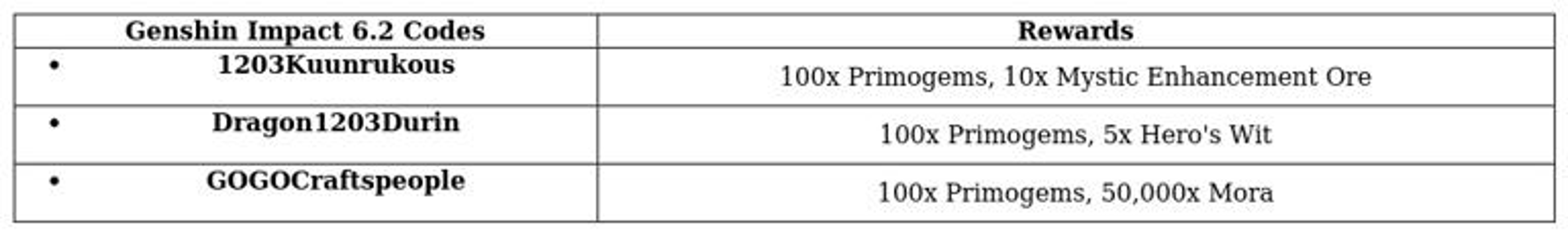 A total of three unique codes were shared during the event, allowing players to claim up to 300 Primogems combined.