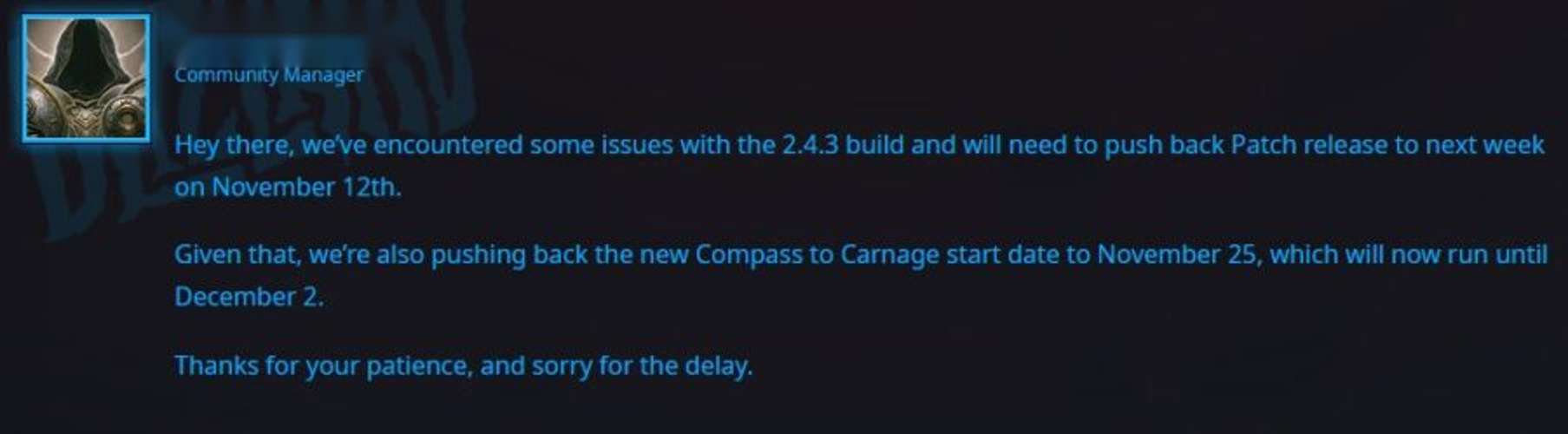 Patch 2.4.3 Delay – New Release Date & Event Update