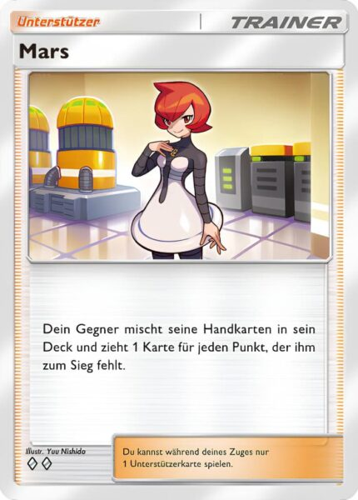 Darüber hinaus bietet Mega-Absol-EX eine nützliche Kontrolle über die Hand deines Gegners. Du hast die Möglichkeit, die Handkarten deines Gegners anzuschauen und eine beliebige Unterstützerkarte auf seinen Ablagestapel zu legen. Damit kannst du verhindern, dass dein Gegner wichtige Unterstützer wie das Forschungs-Pokémon oder Zyrus spielt, was seine Strategie erheblich stören kann.